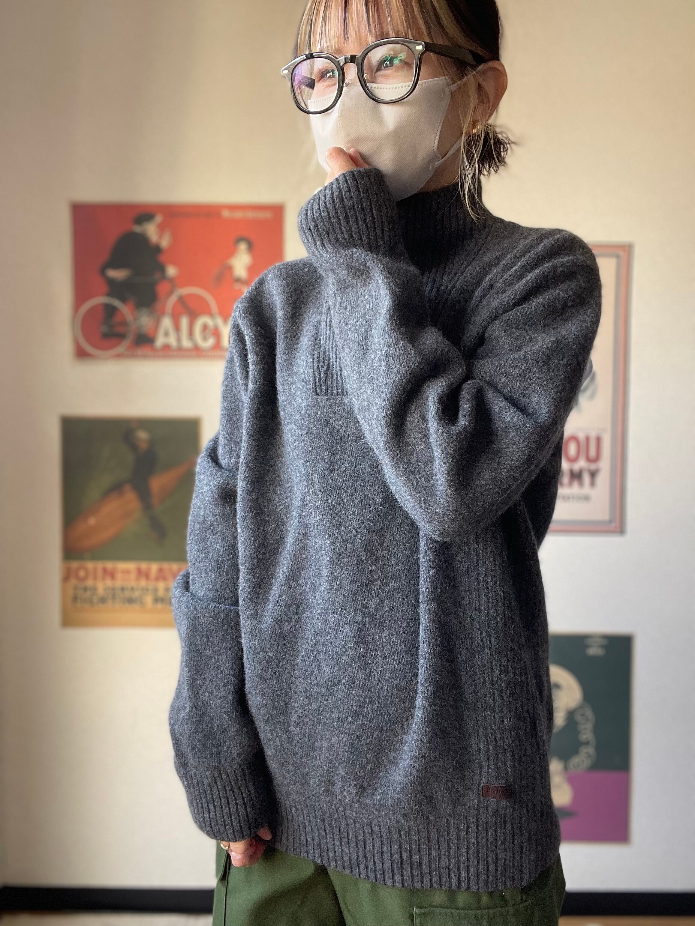 Barbour ハーフジップ ニット セーター グレー