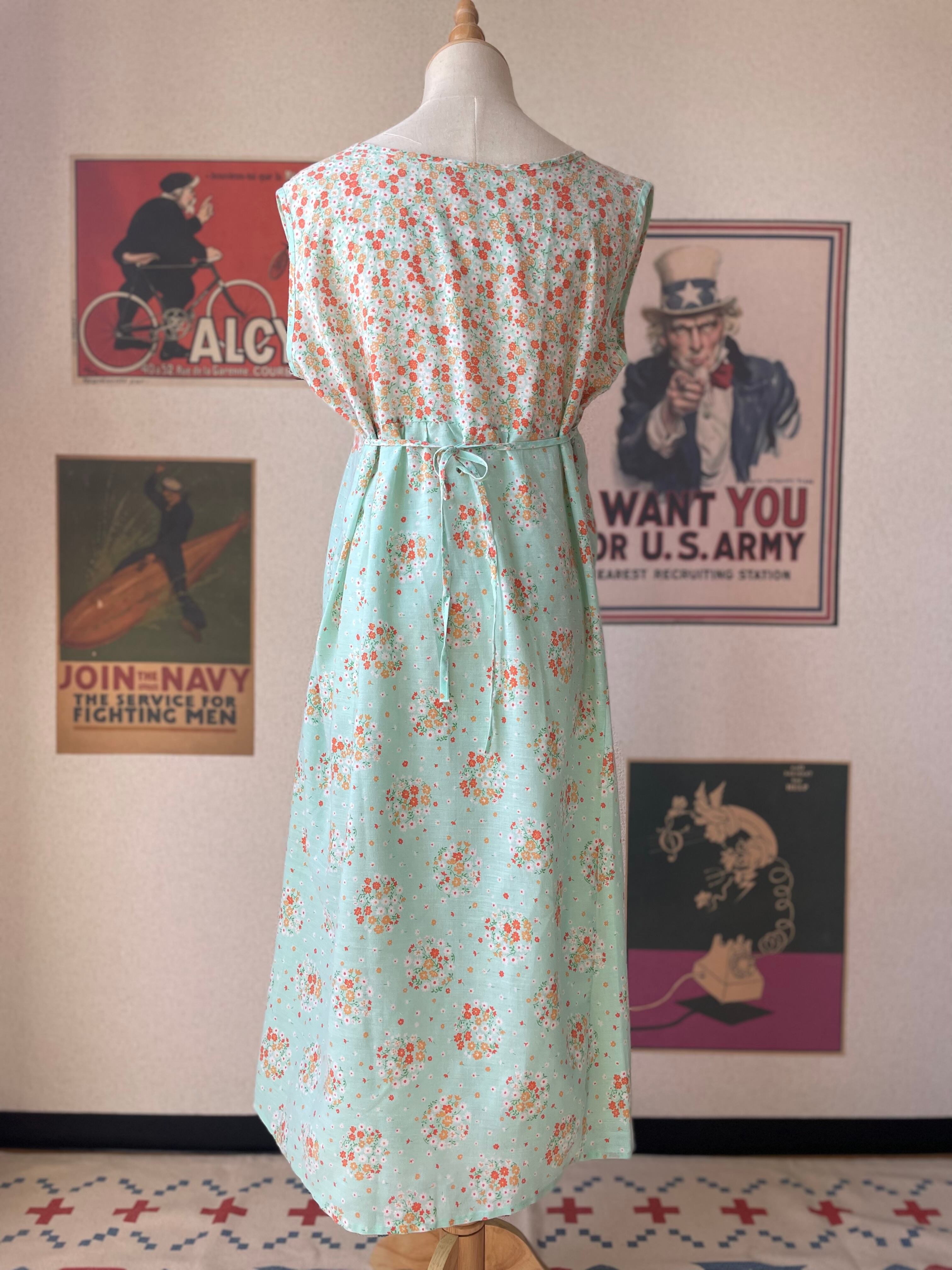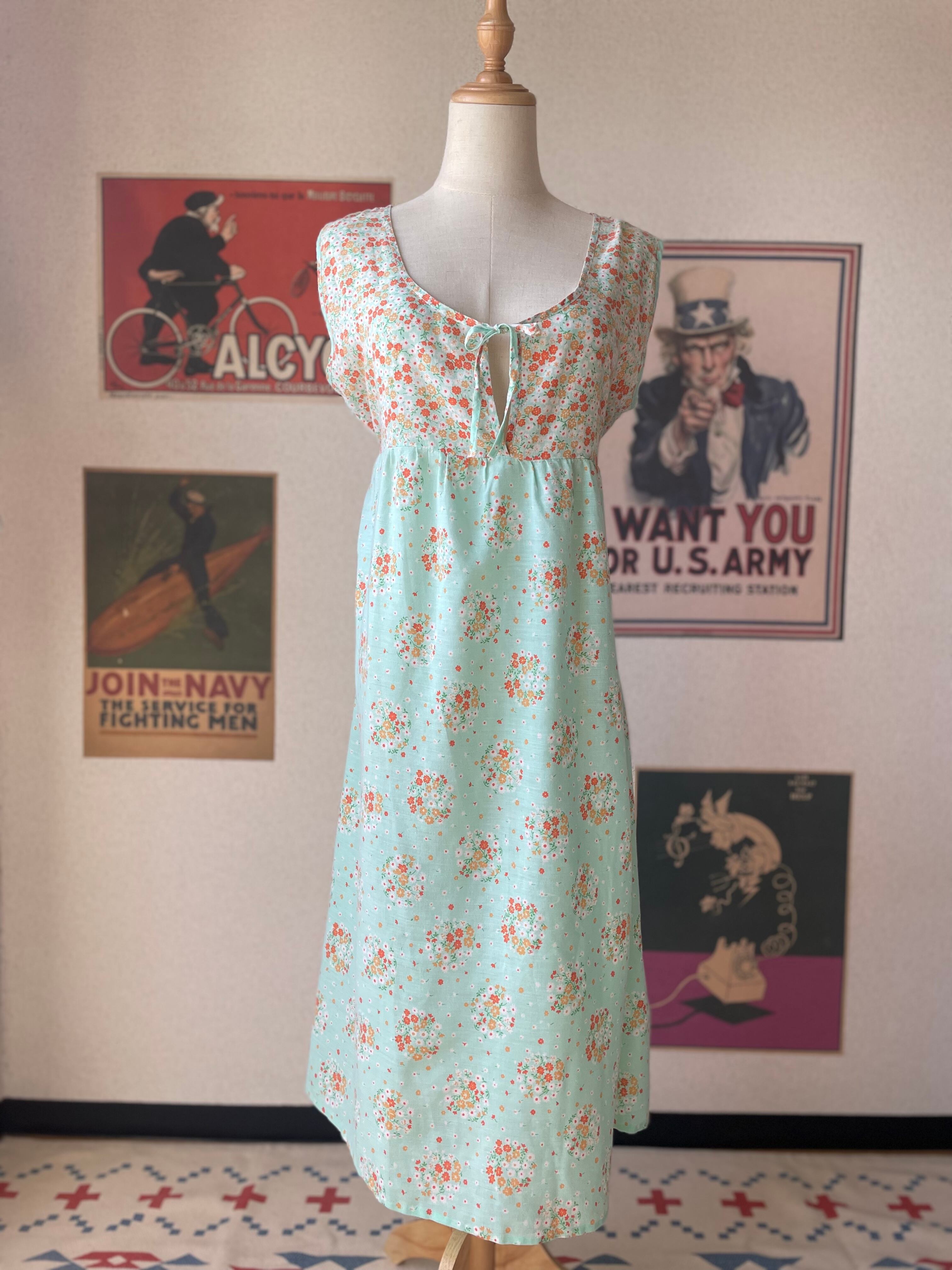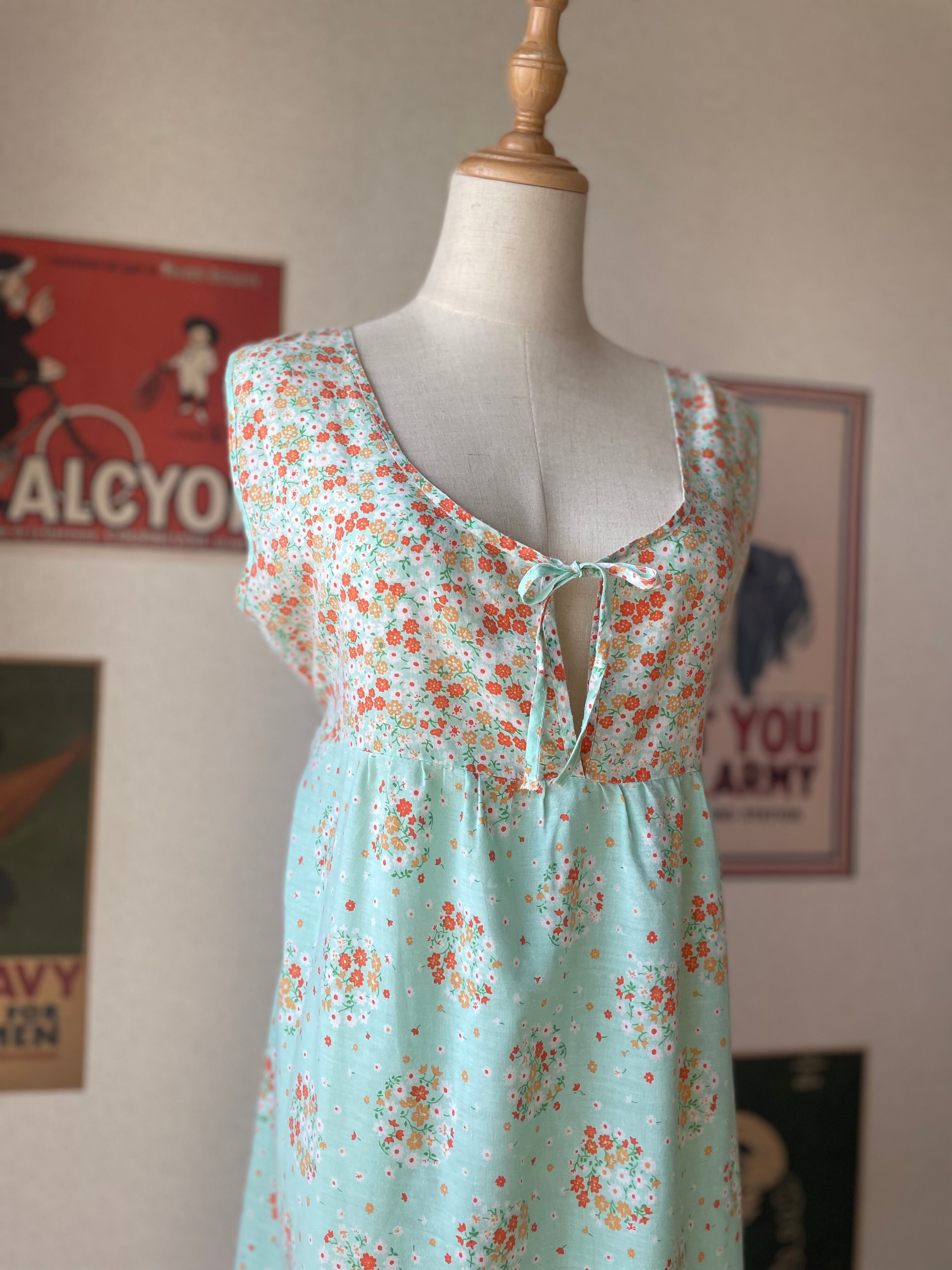 ノースリーブ ワンピース 花柄 ミントグリーン