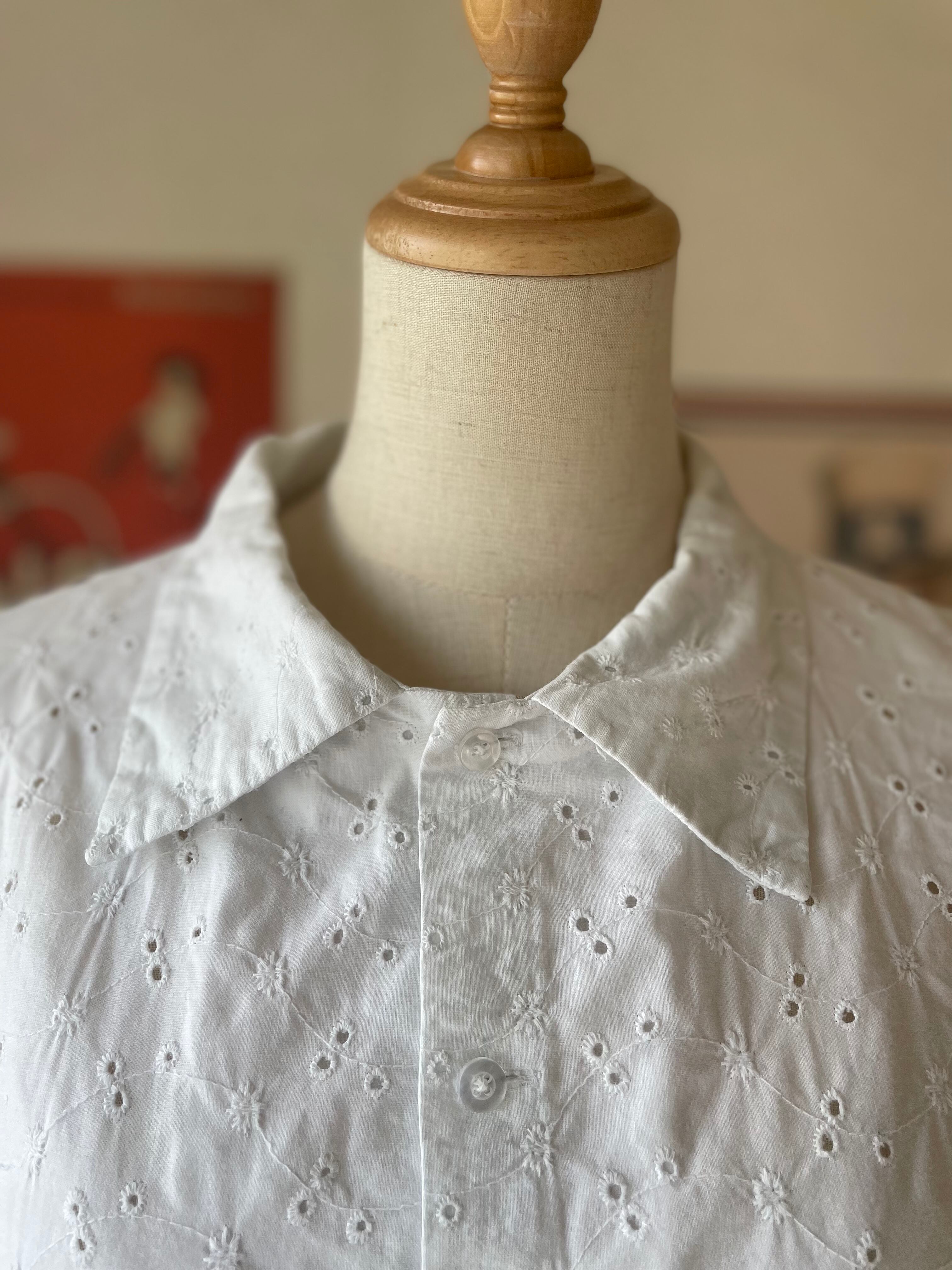 刺繍 ブラウス シャツ 半袖 ホワイト