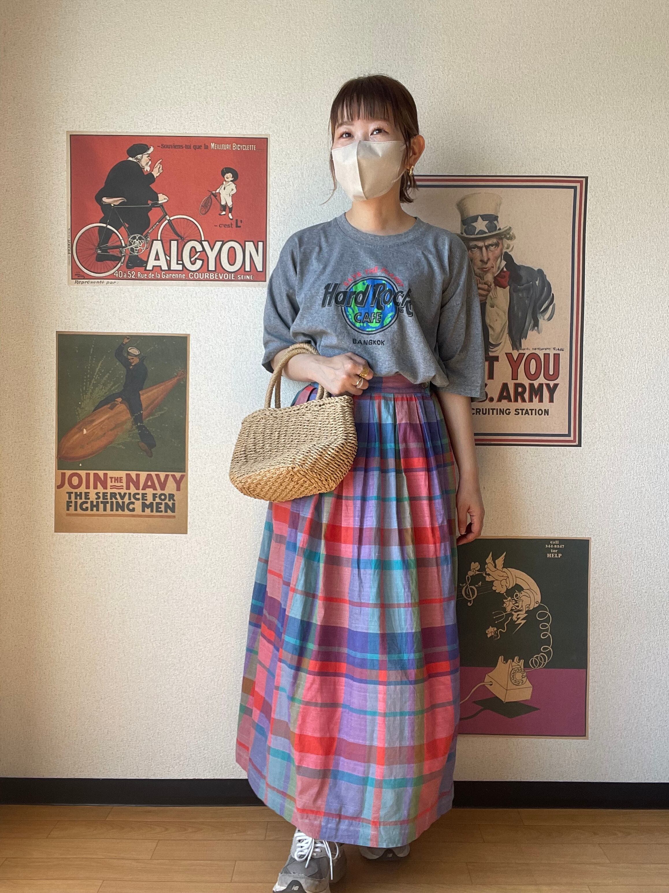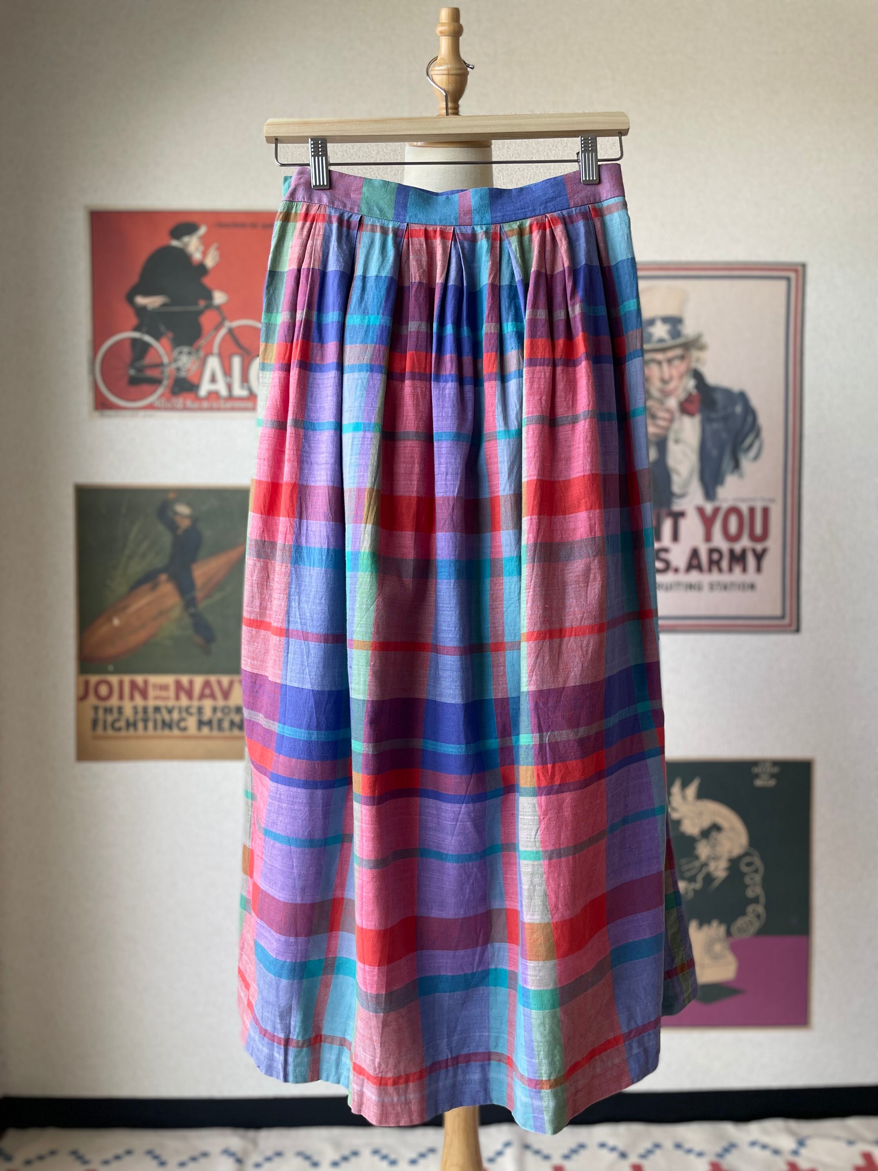 マドラスチェック ロングスカート オレンジ USA製