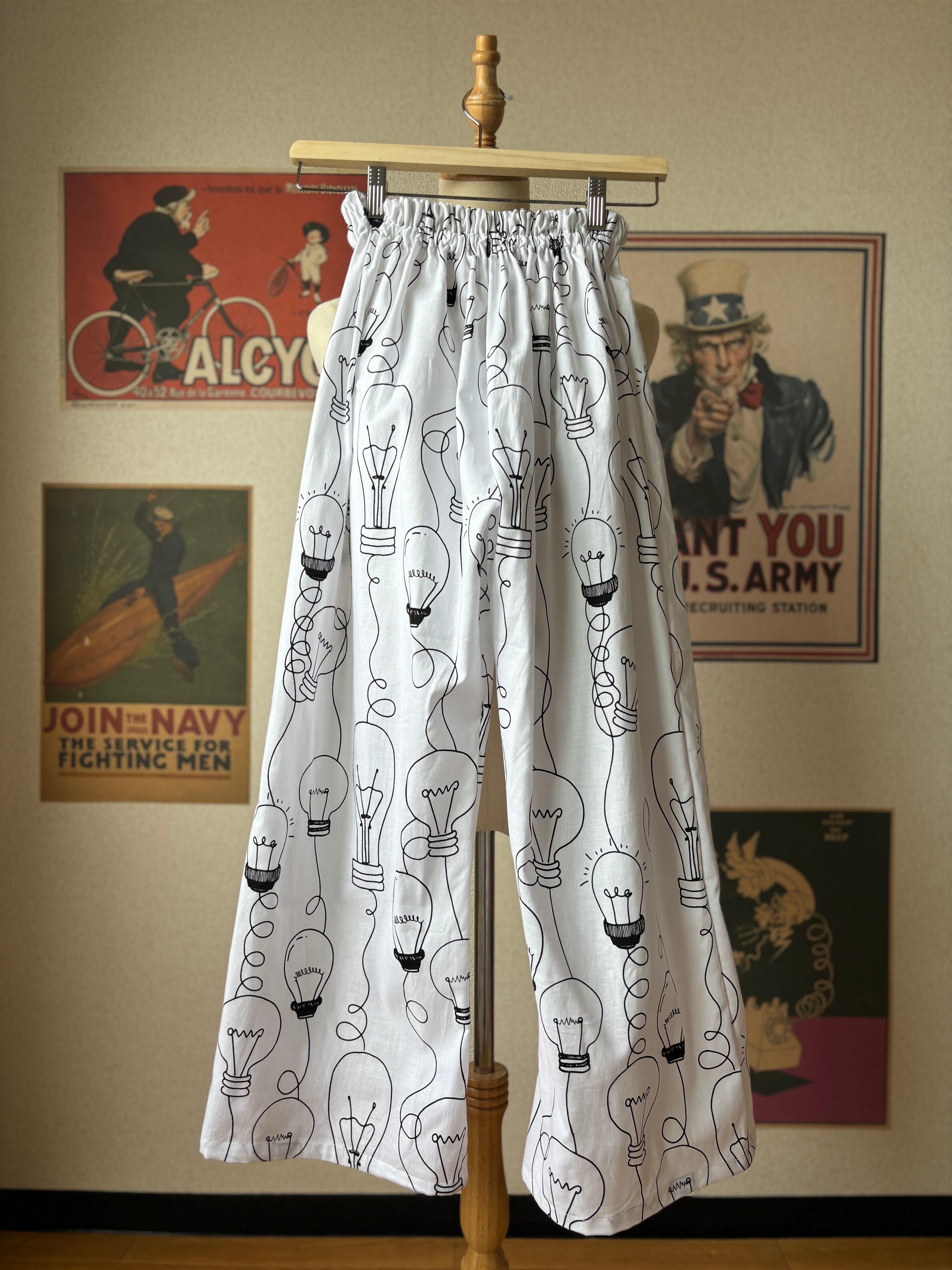 ハンドメイド 電球柄 イージー パンツ